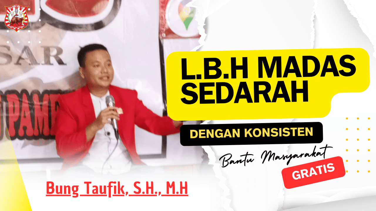 “LBH MADAS Sedarah hadir untuk mematahkan stigma bahwa berurusan dengan hukum itu mahal dan menakutkan. Kami membuka ruang seluas-luasnya bagi masyarakat untuk mendapatkan bantuan hukum secara gratis dan bermartabat,” tegas Bung Taufik, Minggu, (18/1).
